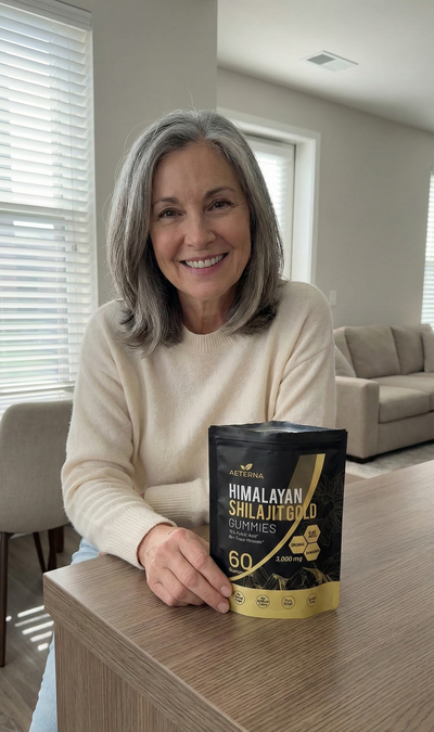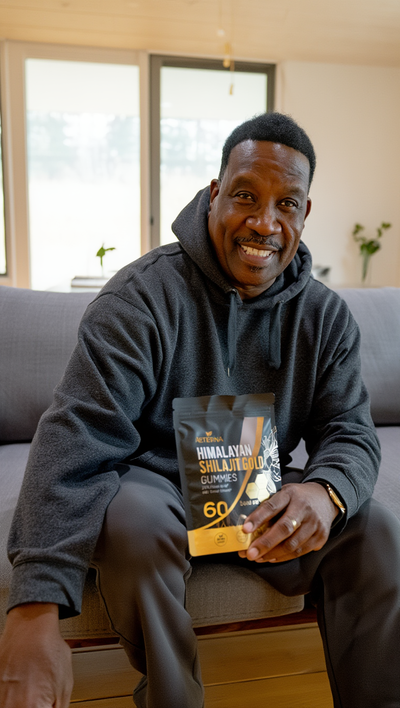 Aeterna Kidney Support Shilajit Gummies are a premium blend of pure Himalayan Shilajit extract combined with Gokshura, Black Muesli, and Ashwagandha. Designed specifically for men over 40 to support kidney function, flush toxins, and restore natural energy levels.